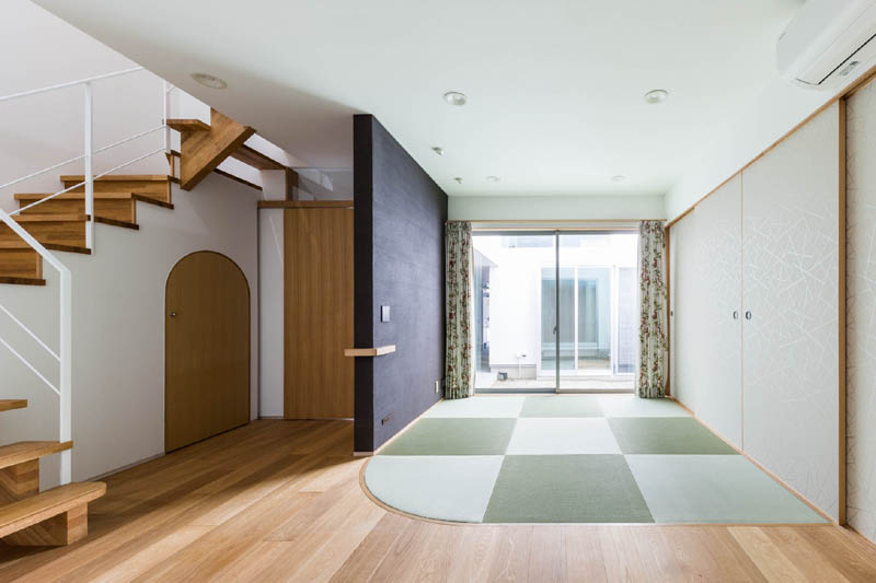 間口の狭い敷地では中庭によって手前と奥が分断されてしまうケースがありますが、そうならないよう1つの家族としての有機的な繋がりへの配慮がとても重要に感じます。 |